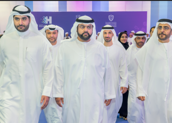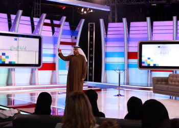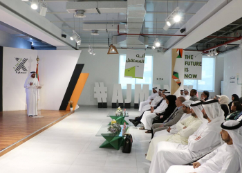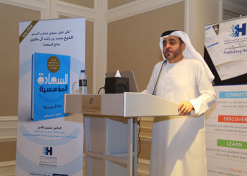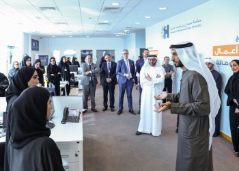 في افتتاح جناح جامعة حمدان بن محمد الإلكترونية في كيدزينا، دبي، الإمارات