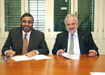 Singing an agreement with Dr. Josep A. Planell, Rector of the Open University of Catalonia, in Barcelona, Spain